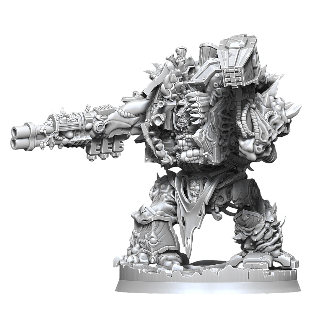 Designed as a Helbrute-style proxy, this miniature fits seamlessly into plague‑themed forces for grimdark 28mm wargames.